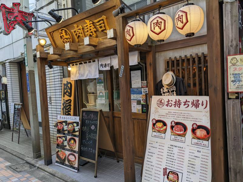 中野のブロードウェイとサンモールの間の道にあるチェーン点「肉寿司 中野店」